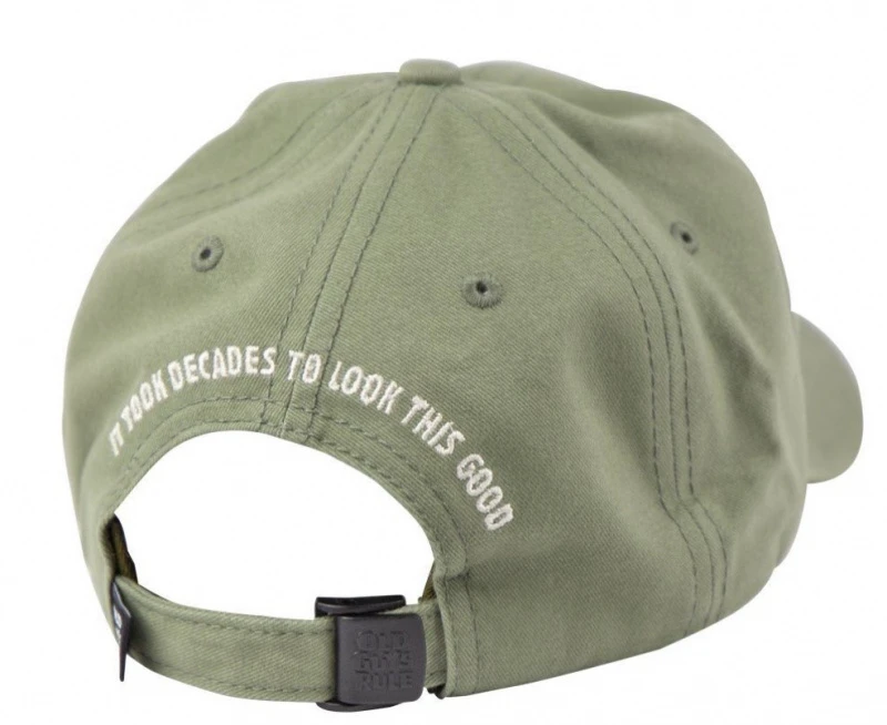 Old Guys Rule Look Good, Olive is een stijlvolle, olijfgroene pet met een duidelijke boodschap in borduursel. Casual pet voor de meeste gelegenheden!
